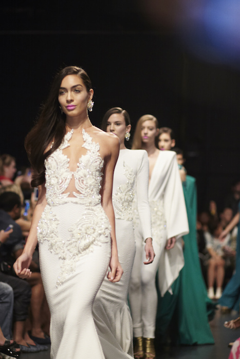 Flowing pieces oozing chic sensuality, with open backs and cape-like draped details ready to make an entrance. The be-jeweled details were aplenty as usual, and the multicolor studio 54 esque drama gave us more smiles at front row. Here are a few of the fabulous girls flaunting the “don’t mess with me I’m fabulous” evening wear- and might we say, flawlessly. MICHAEL COSTELLO sparkled ss16 NYFW commentary + selects by Brigitte Segura.