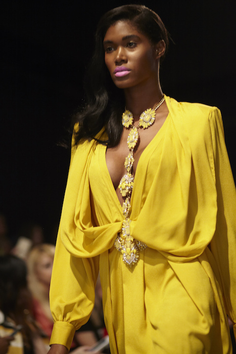 Give us emeralds, pinks, summer fresh lemon and alot of glitter. Did we mention sparkle, gold, embellishment? Michael Costello has added every girl-friendly element into his ss16 collection shown during NYFW. Though most details are consistent with his previous collections, this season, Costello took a confident CHIC stride on the Fashion Week catwalk.