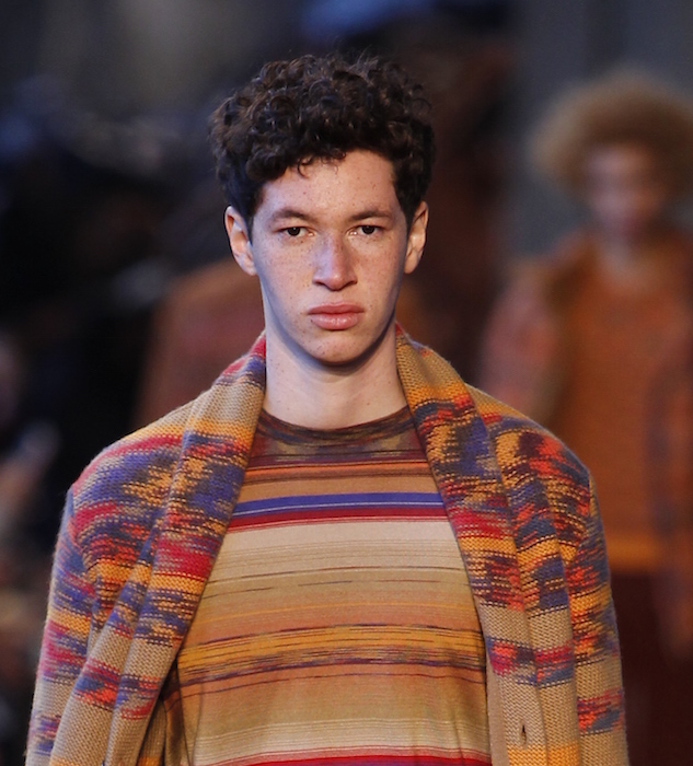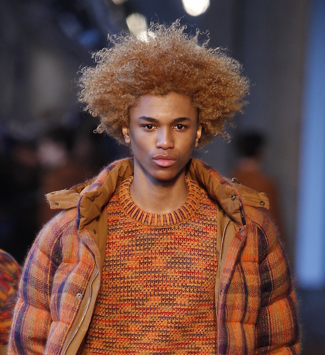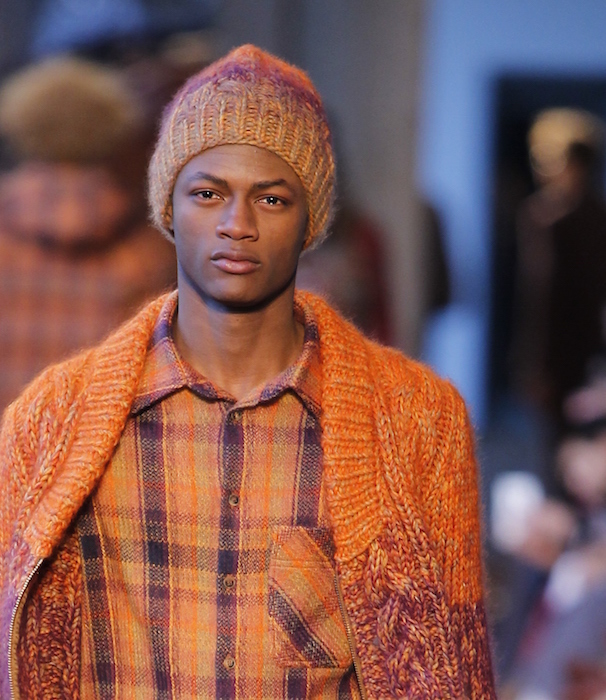 Highlights from the runway: The textured kingdom at MISSONI menswear for fall winter 2016. Colors vibrantly fuse with multi layers + attittude. Here’s a look at some intarsias, stripes, and plaids- all cozy and chic. Favorite hues were in the range of fall folliage, with sun-inspired warm tones… with Michael Lockley + Cristino Lucas rockin’ the final touch with just the right tone + curls !