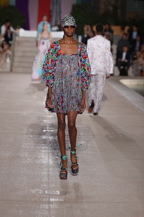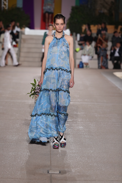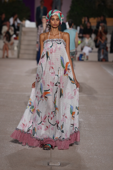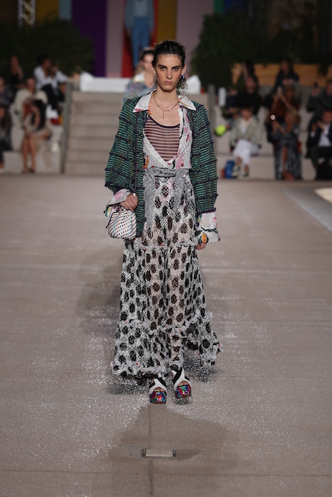 A fresh medley of pattern mixing walked down the Milan catwalk for spring 2020. Missoni’s spring-summer 2020 collection’s easy, breezy vibe reconnects with nature and the outdoors. With oversized florals making making an appearance, the MISSONI melange of GEO + striped patterns in weightless textures morphed into a more youthful look.