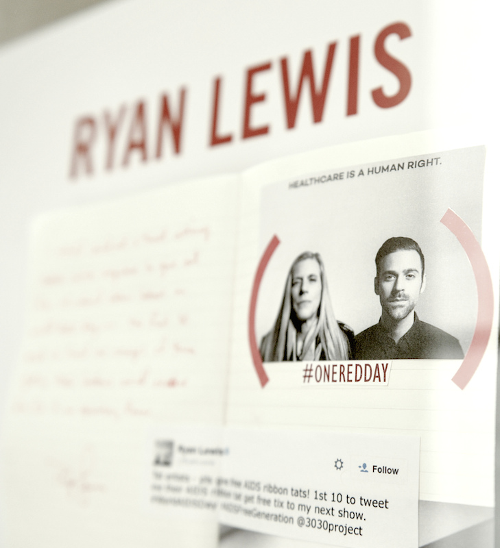 Celebrating the launch of #oneREDday, we joined (RED) and Moleskine at the Park Hyatt a few days ago. The exhibition launch showcased what leading thinkers, entertainers and creative minds would do if they had ‘one (RED) day’ to raise awareness around the fight against AIDS. We got to see the handwritten notebooks with submissions from the likes of by Dr. Sanjay Gupta, Biz Stone, Dr. Robert Gallo, Futura, Ryan Lewis, and Christopher Wilding which will remain on display through World AIDS Day, Dec 1. at Park Hyatt New York.