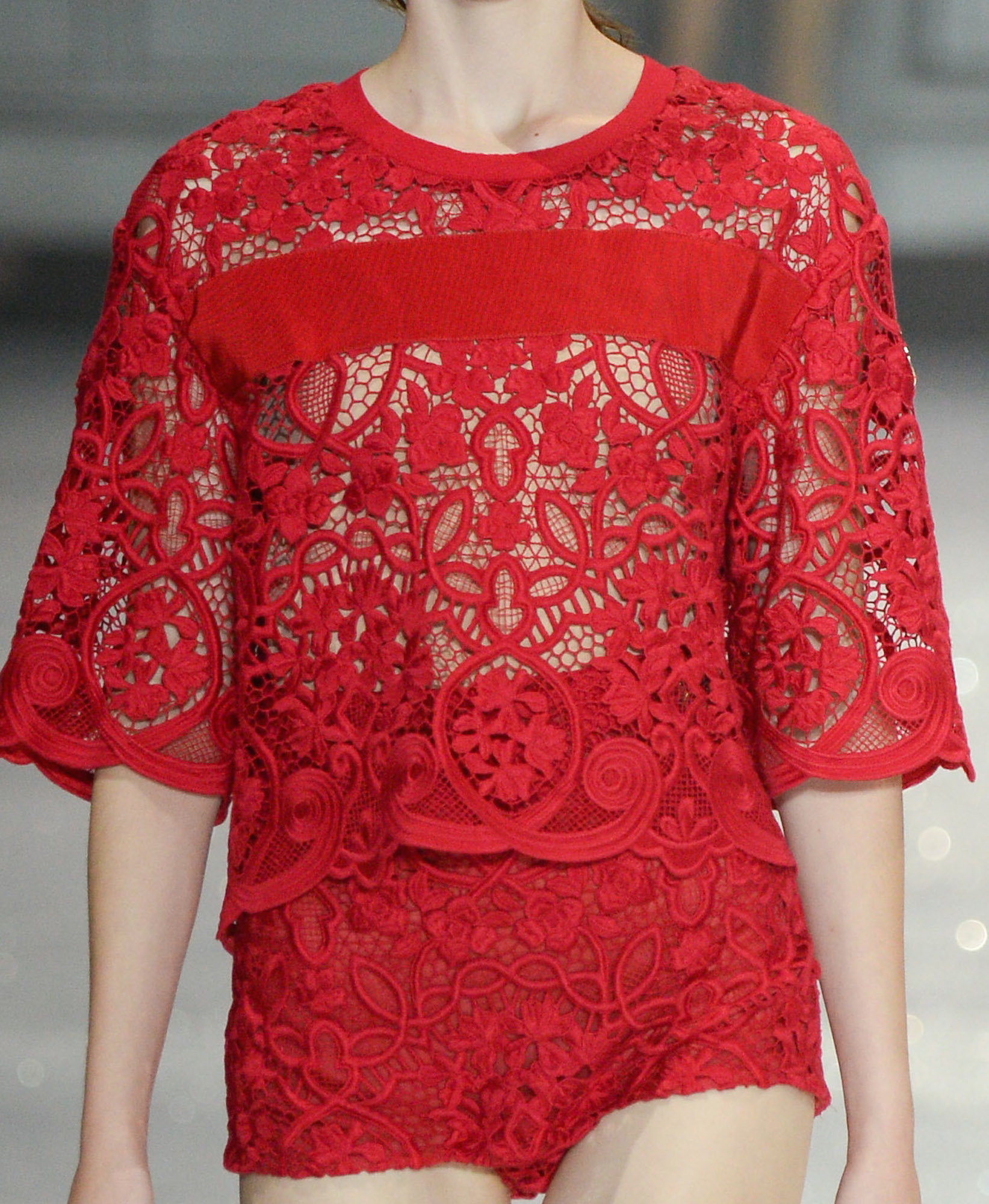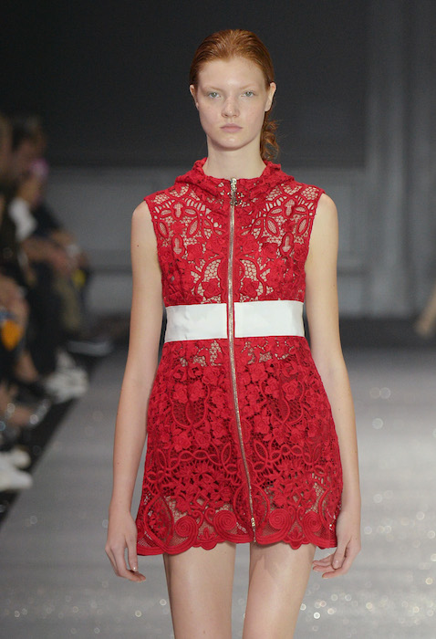 With nothing hugging the skin or hanging off either, Mini-skirts and trapeze dresses were cut to a length that graced the tops of models’ thighs. The lace detailing added a touch of uptown girl to the look but was trimmed in a way that fit in with the cool, sporty theme. Windbreakers with different national flags printed wrapped the down-to-earth cheery collection with Valli’s take on the brand of casual luxury with global flair. Here’s a view of our favorites. MONCLER gamme rouge ss15 PFW selects by Brigitte Segura, written by Andrea Porro.