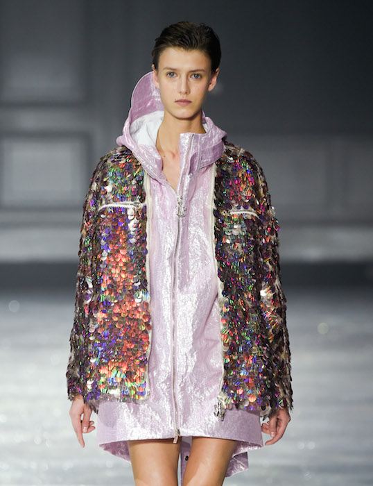 Held at Salon D’Honneur during Paris Fashion Week, the collection was sports-inspired with a laid back girly vibe. Lengths were kept short and slim, with textures of lace making outerwear look fashionably dressed up casual and functional in hi-tech fabrics.