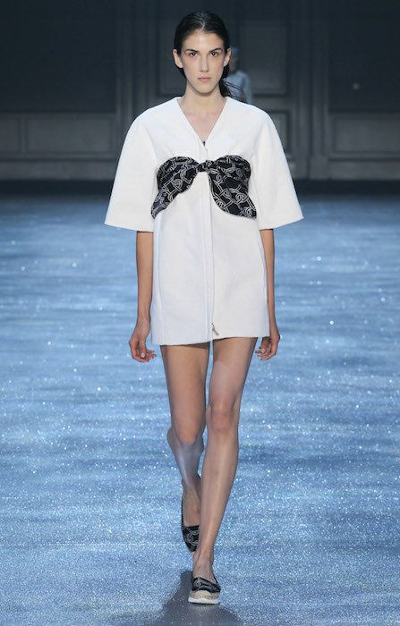 Flashback to the Paris runway: now that the chill is coming on, outerwear is on our mind. Giambattista Valli put the puffer jackets away and pared down the silhouettes for Moncler Gamme Rouge spring 2015.