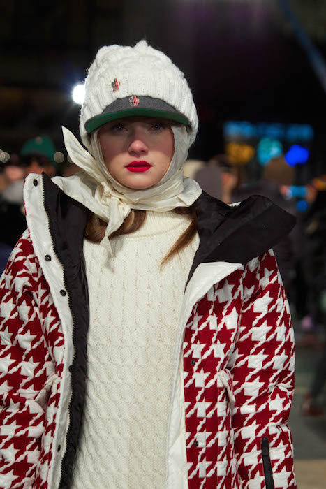 Still, we managed to capture the glimpse of the wonderful layered gear- though we were all wishing we had a Moncler Jacket or 3 layered on our own outerwear. Patterned, chic and warm. Here’s a view of what we saw.