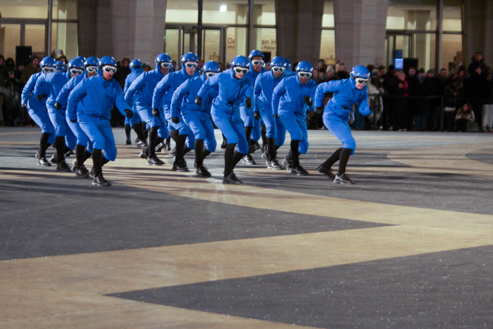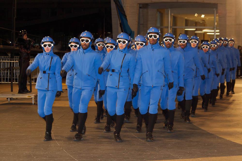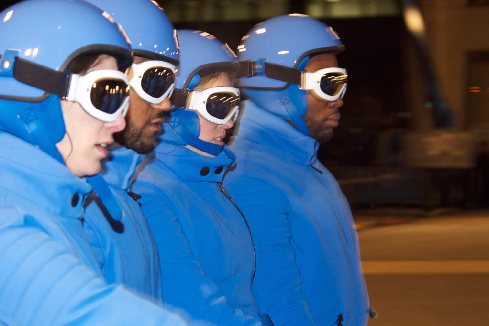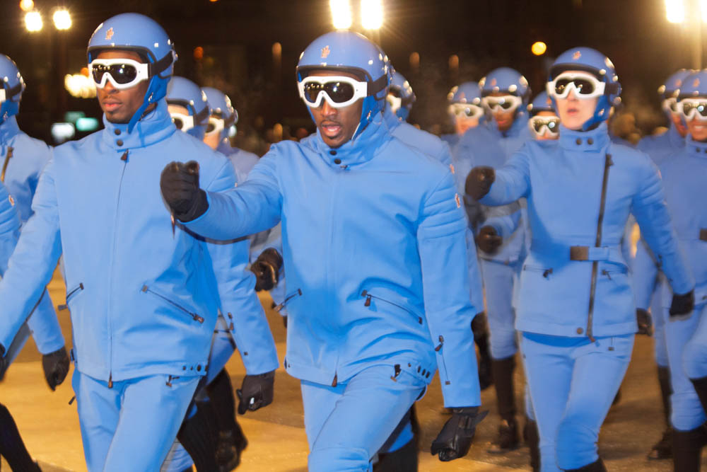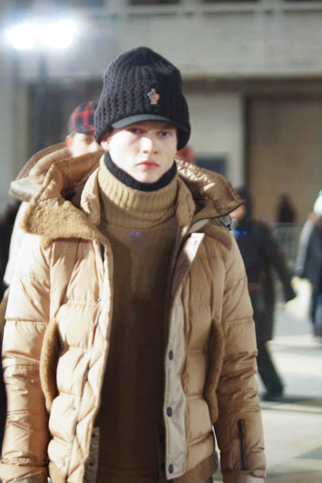 Sub-zero weather gear in season. On a more than cold night during NYFW we hiked up to Lincoln Center to check out the Moncler Grenoble fall 2016 show at Lincoln Center. Though the drum beat and pre-show blue dance was welcome as the start of the traditional Moncler show extravaganza, our frozen faces and fingers were not having it.
