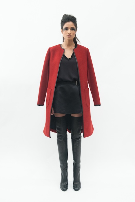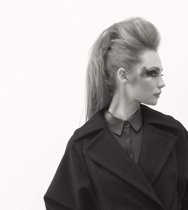 A variety of hip-hugging oxblood, grey, and black legging leather pants, as well as a pinched slouchy chocolate trousers we loved. “Winged” sheathed textiles were delicately draped over a black jumpsuit, and exquisite feathered appliqués were plotted on simple black dresses, to create an effortlessly flawless look. The capsule included everything from etched out turtleneck coats and tops, to white luxurious jumpsuits. This beautiful vignette captured the essence of freedom that birds possess though a series of eloquently elegant looks. fdm selects from MONIKA CHIANG fall 2013 NYFW by Brigitte Segura, written by Julia Paulescu.