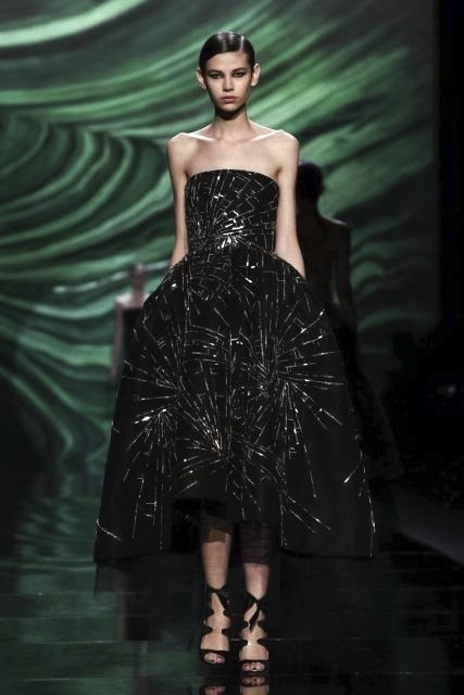 Bravo Ms. Lhuillier for wowing us yet another season. From the opulence of the Emerald backdrop to the dramatic movement of the ruby tassels the presentation was a candy to our eyes. Front row fans at the MONIQUE LHUILLIER fall 2013 show held at Mercedes-Benz Fashion Week included front-rowers Brad Goreski, Lydia Hearst, Conie Britton, and Bridget Moynahan.