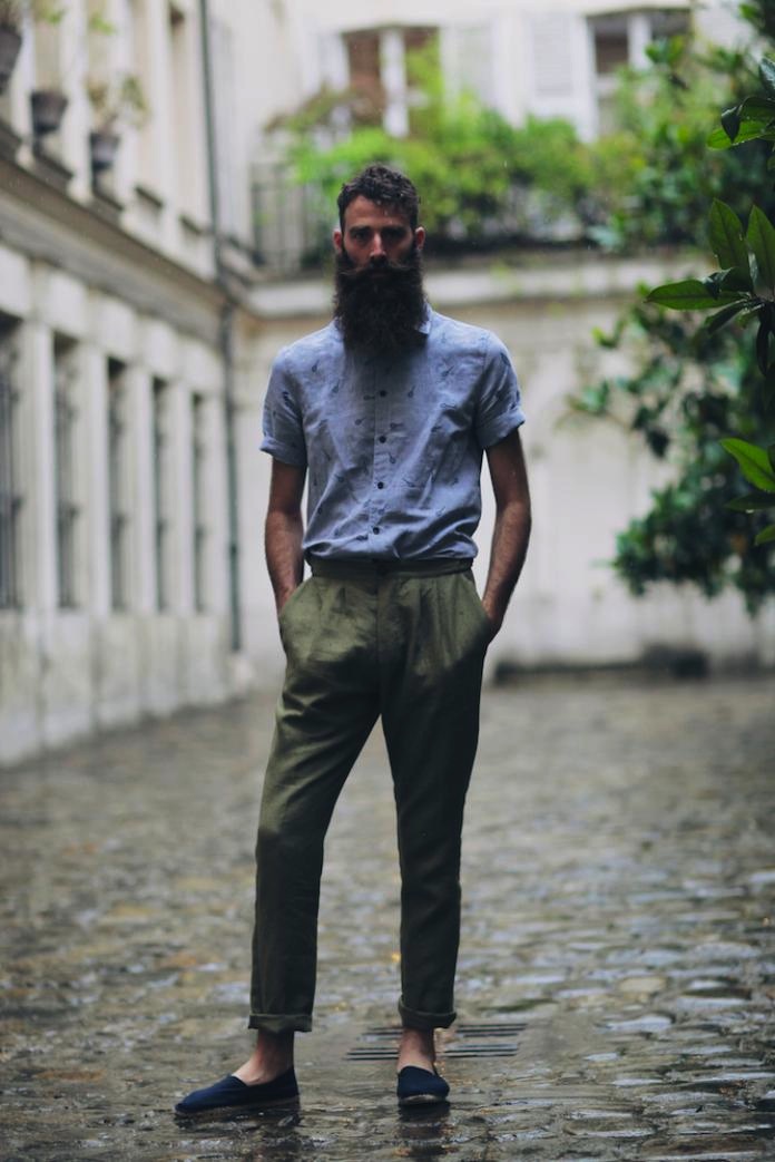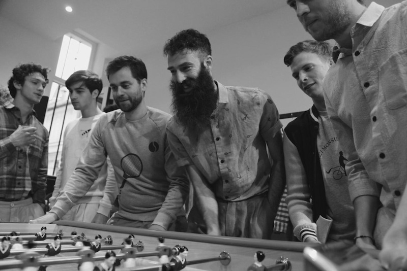 Fun and wearable! Monsieur Lacenaire “Merci Monsieur Lagrange” for Spring Summer 15 menswear collection Paris. The colorful capsule is a tribute to Léo Lagrange, French minister of the leisures in the 30’s, who created paid holidays!! The guys (including beards) on bikes in the cheery wear celebrates outdoor activities and fun time with friends.