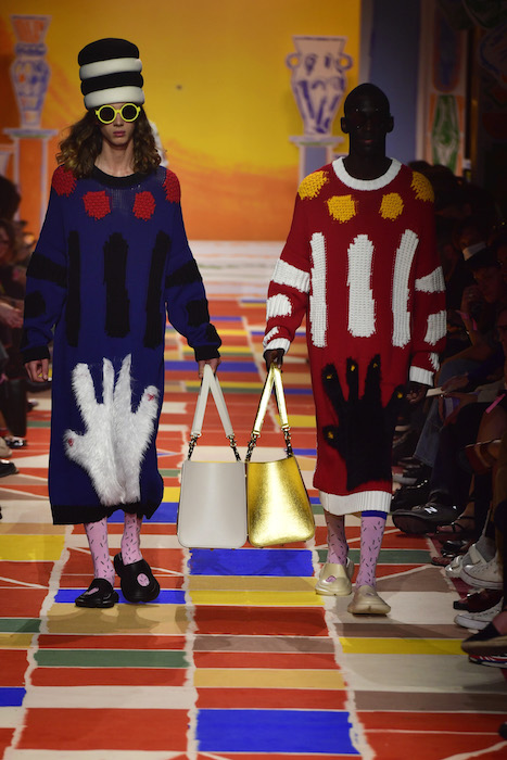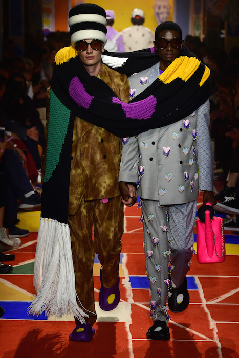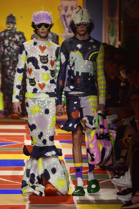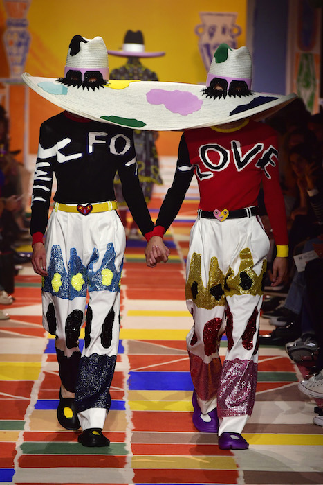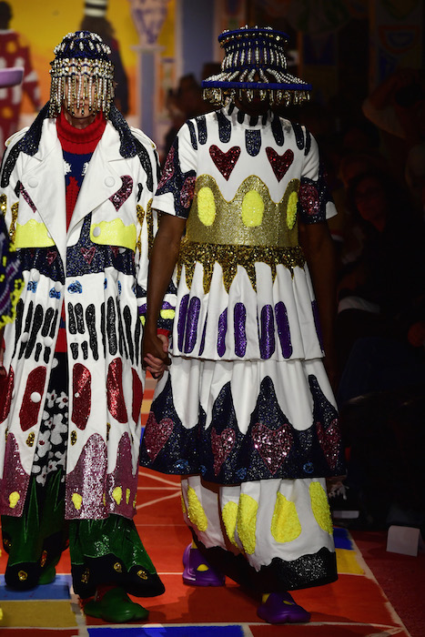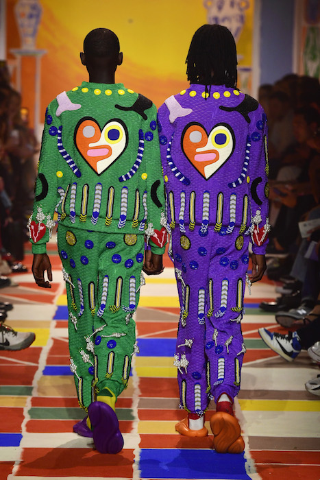 Colorful pieces with thoughtful design, and alot of hearts! Though best appreciated as they were shown on the runway in Hyeres, with two handholding models twinning their complementary looks, promoting the idea that love tolerates distinction even while unifying spirits under the expansive umbrella of love.