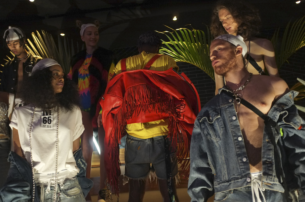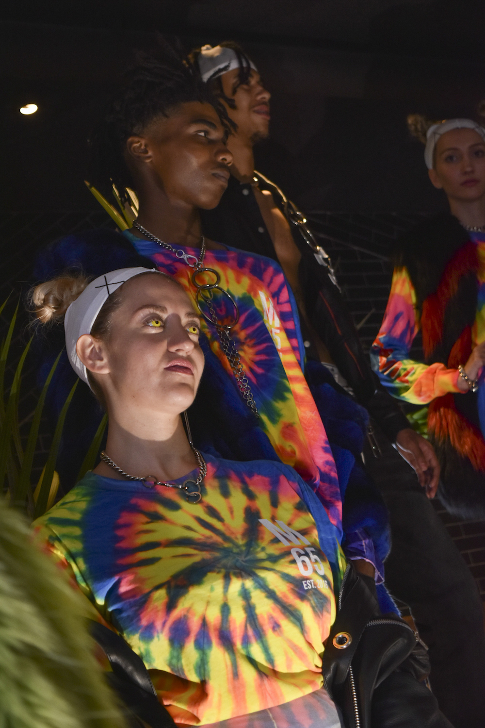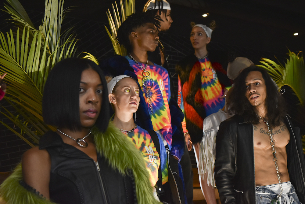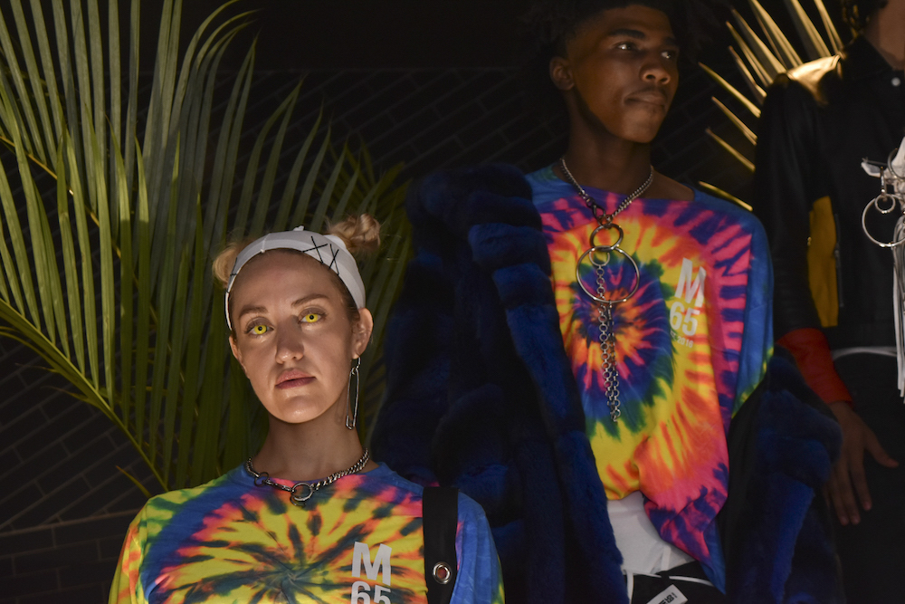Living in a multicolor world: rainbow vibes, cool edgy looks, and a whole lot of leather with an attitude. The M65 collection x tumblr was our first show this season during the unofficial first day during New York Fashion Week. Tropical cool vibes meshed with leather MOTO’s and a fab green trench to want now. Alternative casual for everyday cool.
