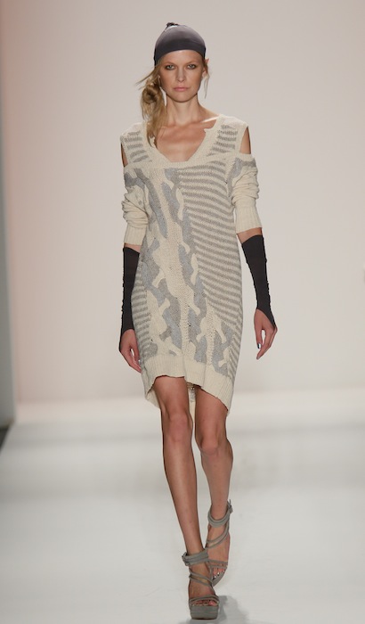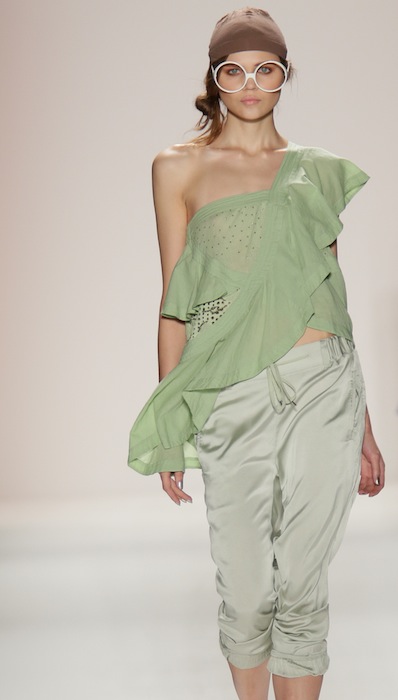 Accessories were just enough with a sophisticated-update spinning an espadrille (Nicholas K), little miss smarty pants big-circle glasses , hoods and thin stocking caps appropriately interspersed, and scarfs – sometimes turned into loose head covers. Soft and simple hair by Nick Irwin for Catwalk by TIGI complimented fresh and natural make-up by Janell Geason for Aveda, and nails by Haven for Essie. The collection evoked a fashion fast-forward to the prospect of style evolution. NICHOLAS K SPRING/SUMMER 2013 COLLECTION. Written By Sarah A. Freiseis. Photos: Randy Brooke.