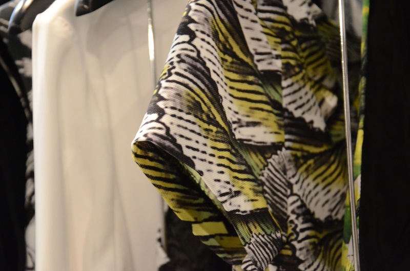 Known for her iconic and standout fabric manipulation, the Nicole Miller Resort 2015 collection got our attention with the graphics this time. The more-than-noticeable crisscross and kaleidoscope-evoking patterns prowl in this new jungle and tribal-inspired collection. We recently got a close up of the stunning patterns, and we’ve mixed in a few details shot by Andrew Werner exclusively for FashionDailyMag.