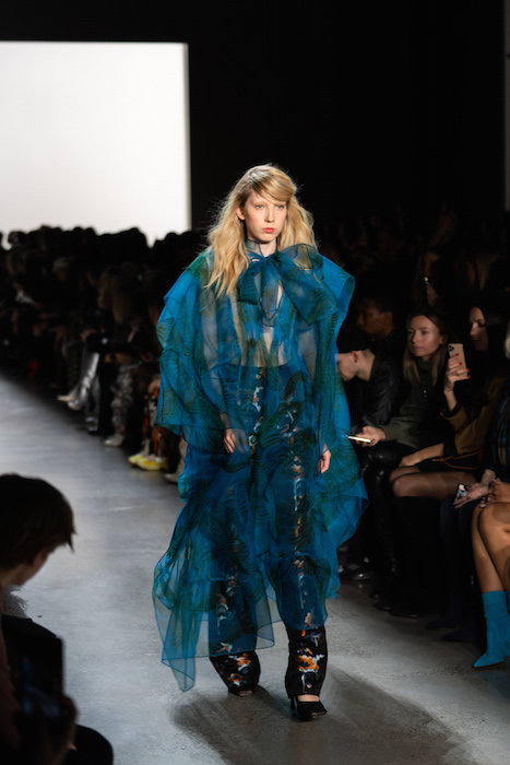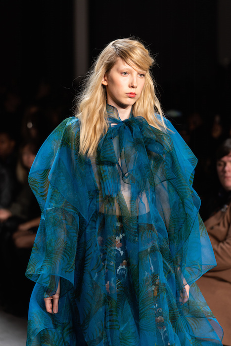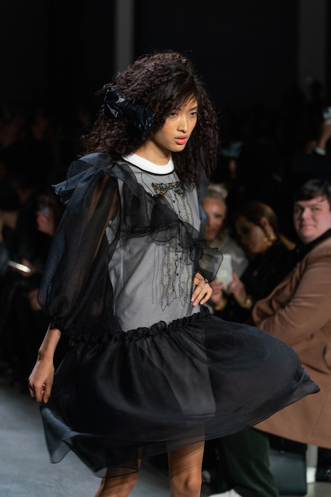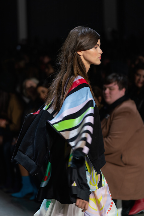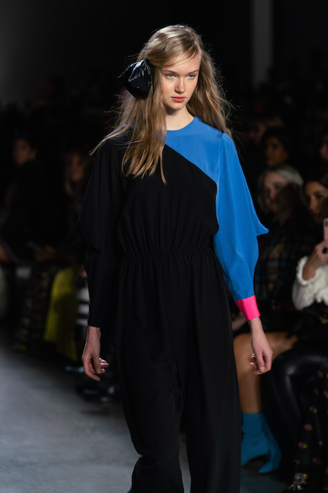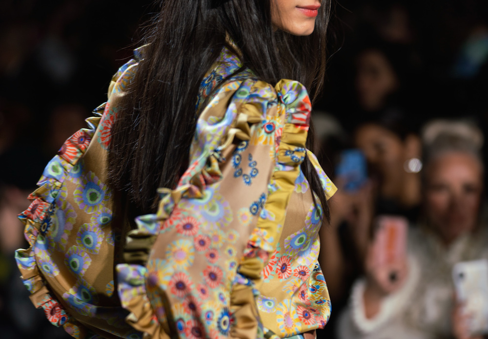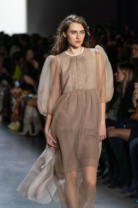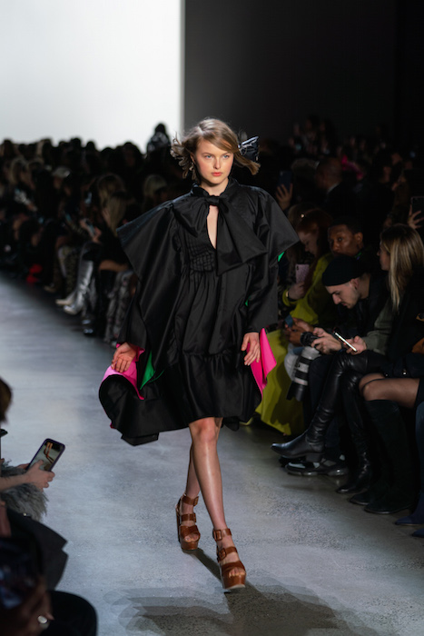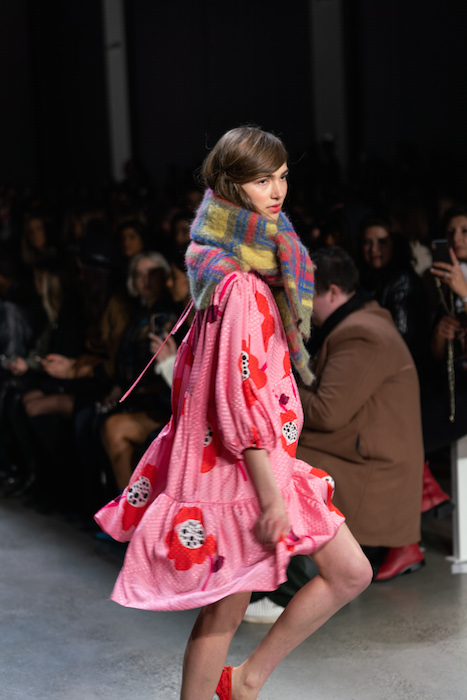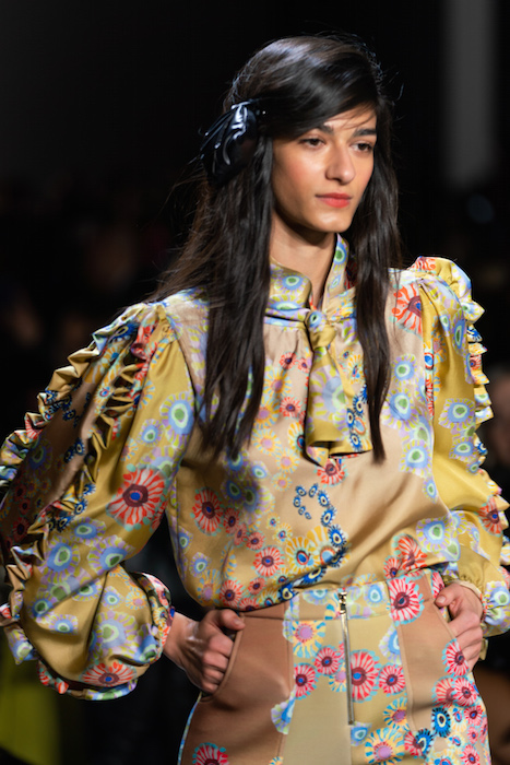 Playful style for miles. Keeping it fresh, Cynthia Rowley’s fall 2020 looks turned up the volume on the runway. Keeping it young and lively with high energy music to vibe the collection, Rowley’s playful ruffles and tucks paired with oversized sleeves and patterns. Color blocks mingled with easy to wear dresses reminiscent of artists smocks, as the prettiest fresh faces came down the catwalk with a pop of red lips.