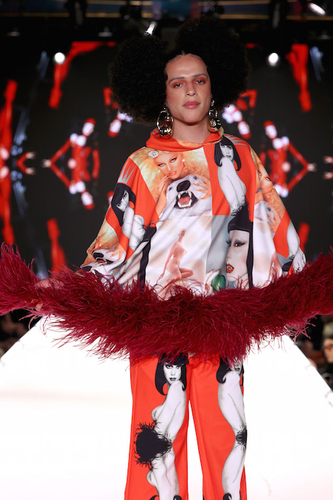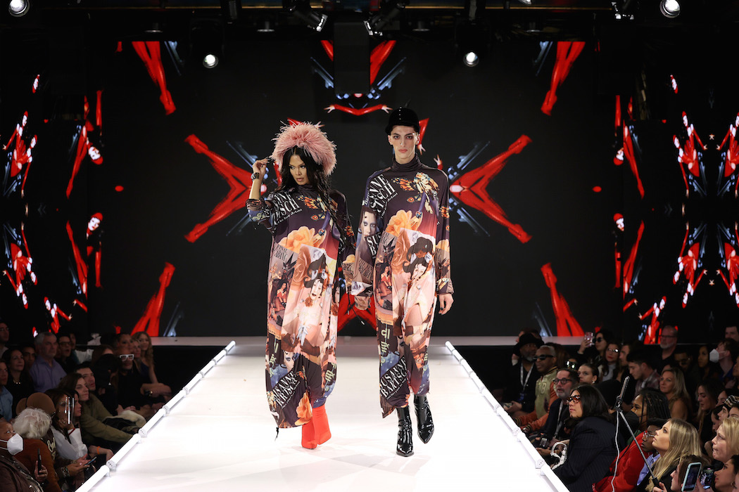 NEW YORK, NEW YORK – FEBRUARY 11: A model walks the runway wearing XXX at Runway 7 Debuts Fall 2022 Collections during New York Fashion Week on February 11, 2022 in New York City. (Photo by Jemal Countess/Getty Images for Runway 7)