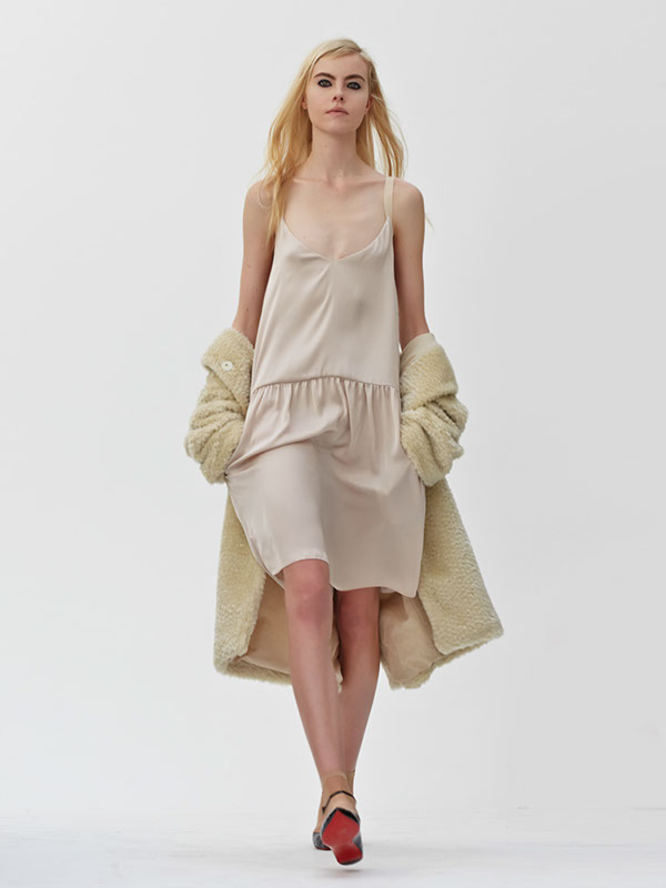 Edginess doesn’t have to be dark to be cool. Becoming one with nature using a base of neutrals the designer punched up the palette with a few petal hues for Fall 2013.