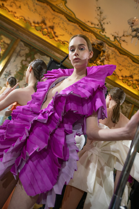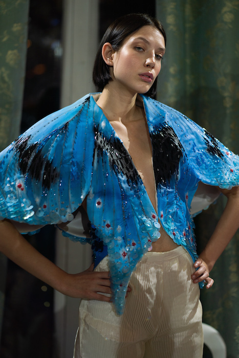photographed by portrait photographer Joy Strotz in a new collaboration for FashionDailyMag, Here’s a gorgeous view of the atmosphere, details and makeup behind the scenes and on the runway. Here come the butterflies… FAHRAD RE SPRING 2020 couture.
