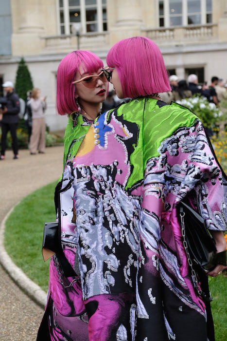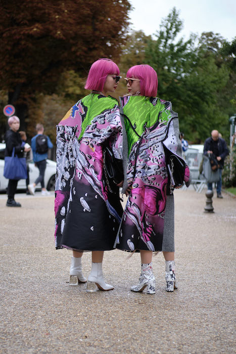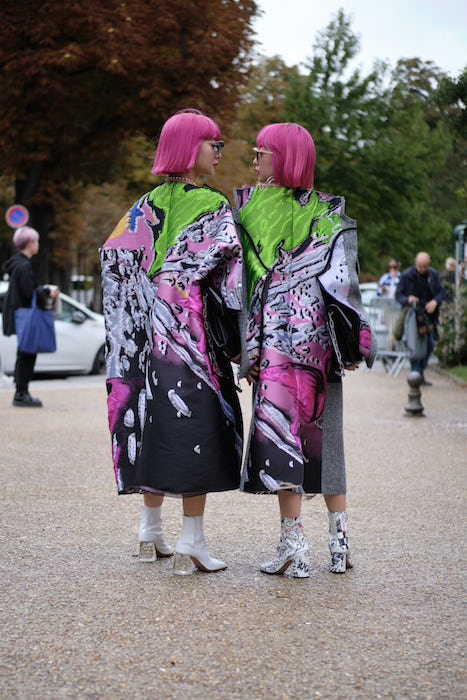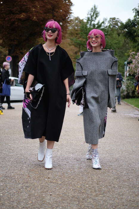 a different view. While it’s haute at the Paris Fashion Week shows inside, the looks of the editors and models (some influencers) is inspiring going in. Here’s a sneak peak of people going into Dries Van Notten, Maison Margiela, and Dior.