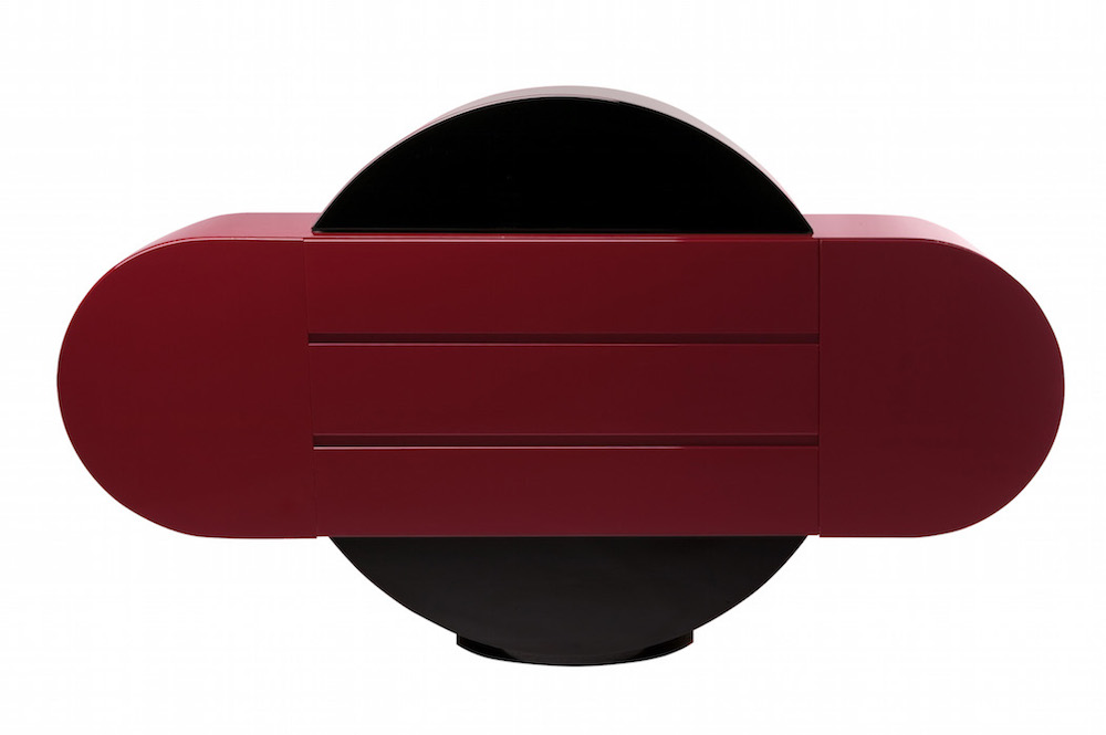 -from this path new futuristic shapes arose that combined the arts of traditional lacquer and wood cabinet making with geometry. This innovative intuition of Pierre Cardin became the structural and aesthetic components of his designs.