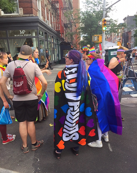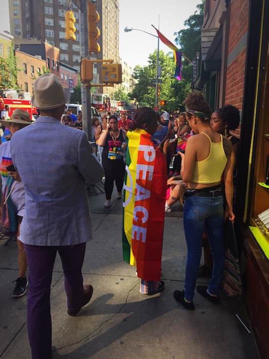 While We were out and about to check out an NYCPRIDE performance and some ‘Sinful Colors’ glittery nail polish made just for the occasion, we just got into the groove of the post- parade celebration. The pride-happy clothes expressing unity fused with all the excitement and energy as well as singing and laughing led us to just follow the crowd and enjoy the colorful mood.