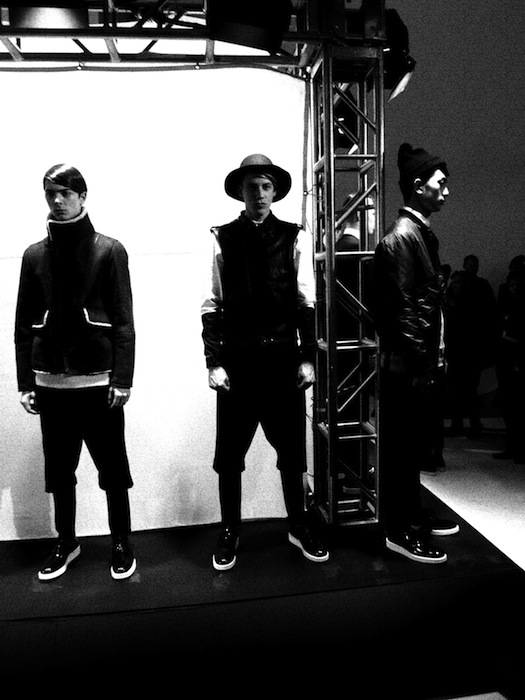 The Public School fall 2013 presentation was set against a bare bones backdrop at Milk Studios aka the Milk MADE shows. The quadratic layout revealed a well-rounded view, making the boys + the fashions stand out with an up-close and personal feel. Speaking of which, our blondie model of the season Lyle Lodwick was there catching our eye along with Matt and a couple of (brunettes) too!