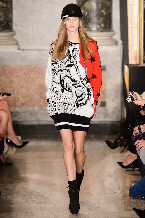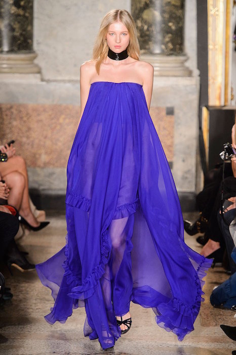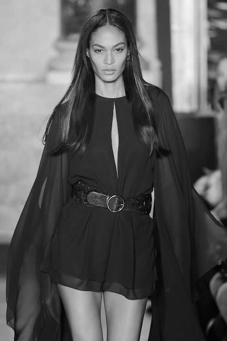 With every ‘happening’ element present including ruffles, gold, fringe, sheer romance, multicolor, oversized graphics and the tuxedo looks included, this collection has every identifyable current trend shouting. Not holding back on the models either, the range of catwalk babes included GiGi Hadid, Taylor Marie Hill, Joan Smalls, Ondria Hardin, Malaika Firth, Sasha Luss, and so many more.
