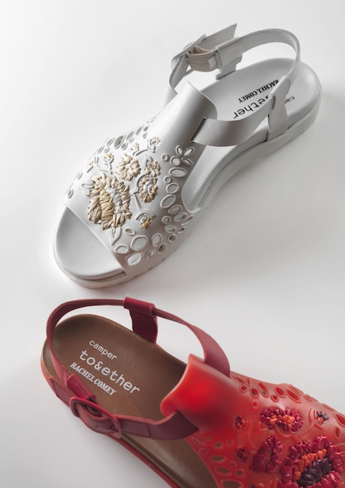 These sandals are inspiring us to “think warm.” Ideal for the summer in red, black, and white, and available in stores since April 1st. Rachel Comey x Camper together written by Nadia Hartvigsen.