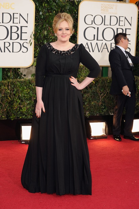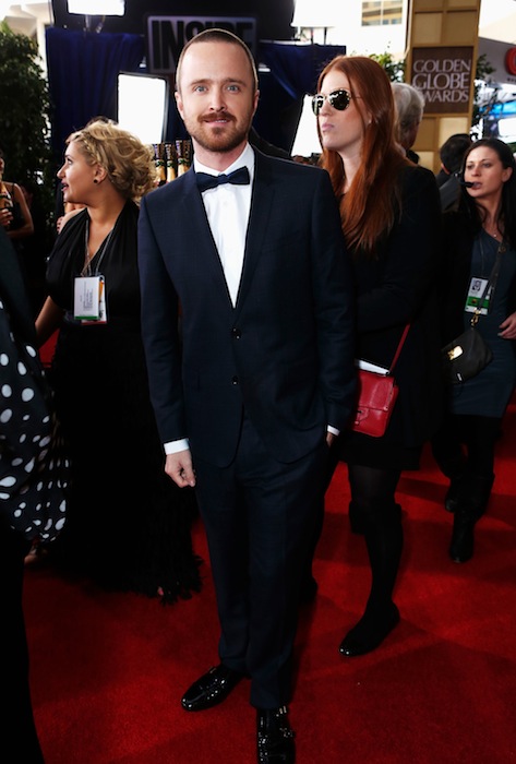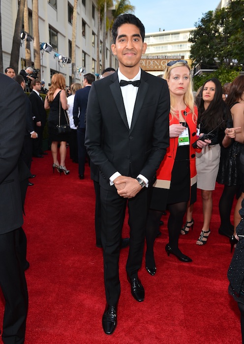 Other actors wearing Burberry include: Orlando Bloom in an ink satin notch lapel tuxedo with dark wine leather dress shoes, Hugh Dancy wearing a black grosgrain notch lapel tuxedo with black silk pocket square, and Dev Patel also in grosgrain notch lapel tuxedo but with a grosgrain bow tie, as well as Aaron Paul. The feminine embodiment was Golden Globe Award winning British singer Adele wearing a silk georgette evening gown with hand-beaded neckline.