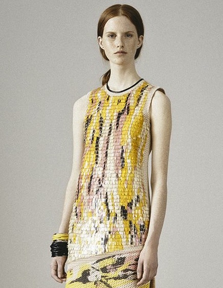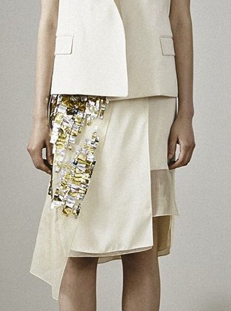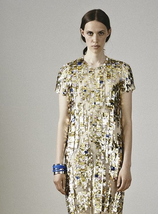 Famous for his iconic handbags, former Coach creative director Reed Krakoff got our attention with the Resort 2015 collection. Uneven hemlines, metallic accents and minimalist flair are clearly a focus in this clean and cool resort line up. A bit of shine and texture hint a modern take of bling on the skirts and dresses.