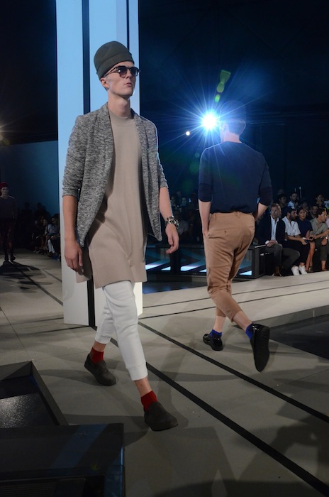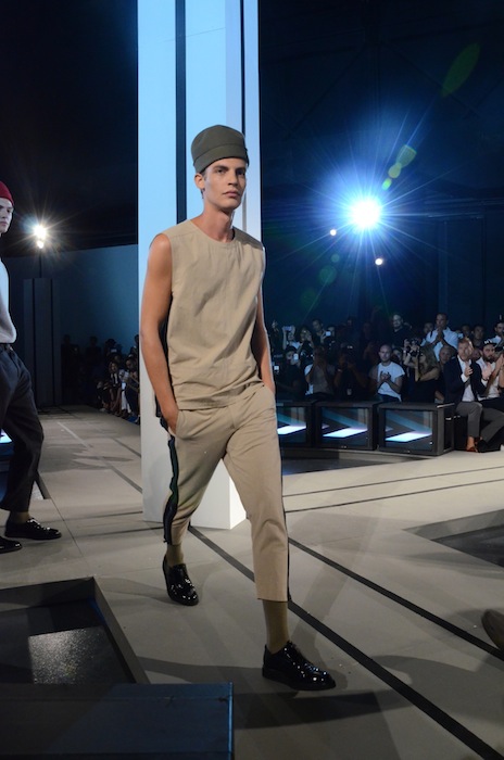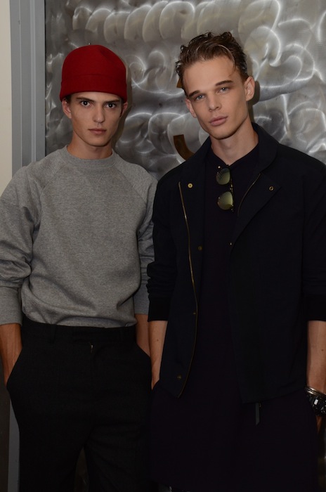 Handsome and hip with purposeful shaping and clever cuts at Robert Geller SS15. Modern in both style and swagger, this line is forward and fresh but with a naturally casual vibe. Fully stocked with strapping young lads, the casting was spot on with favorites including Baptiste Radufe, Alexander Ferrario, Guerrino Santulliana, Dima Dionesov, Benjamin Jarvis, Andre Bona and Paul Boche. Check out some of the backstage hellos here.