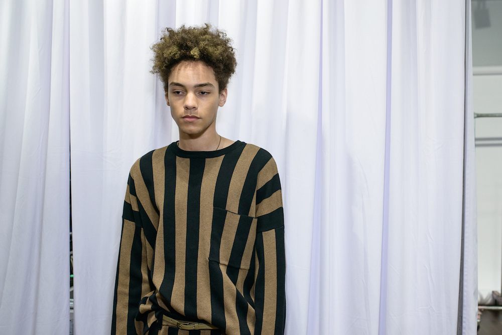 Backstage familiars and NYFWM ss18 FashionDailyMag fave, sweet faced Don Lee rocks the denim neutral stripe. Catching up with special guest and NYFW:M ambassador Young Paris behind the scenes.