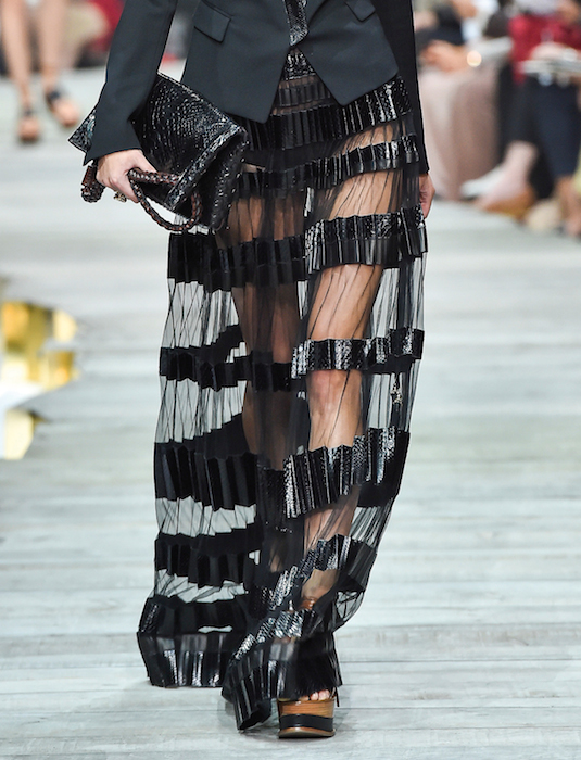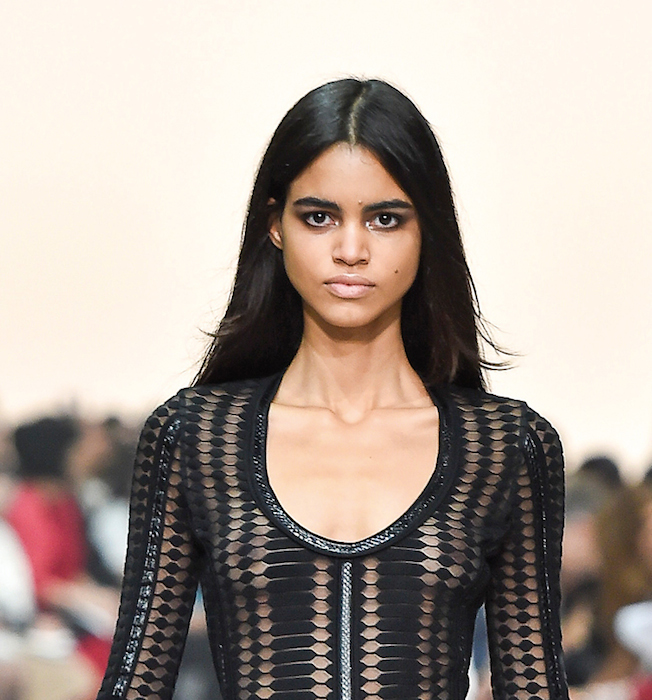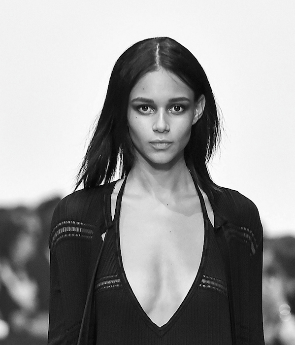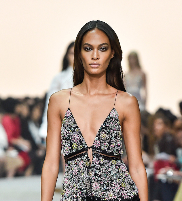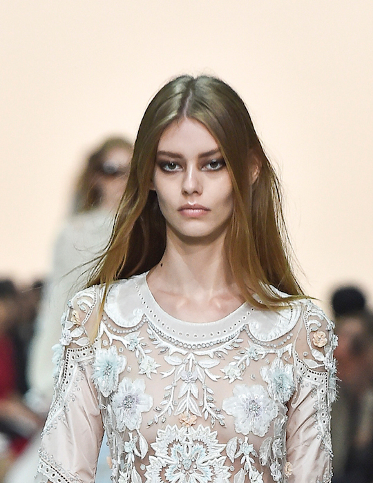 For spring summer 2015, the the Roberto Cavalli models flow onto the deck, encountering summertime with a desire for a carefree escape. A sensual nature is embodied in transparencies, embroidered tulle, feathers and a light fringe with a hint of traditional Cavalli glimmer. Models Binx Walton, Ondria Hardin, Joan Smalls and Kasia Struss show off the vintage inspired collection effortlessly on the Milan runway.