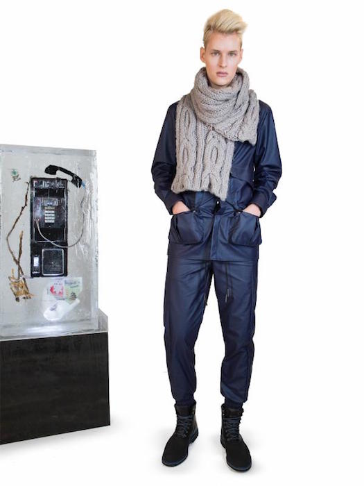 Oversized flashlights and boots completed a cyberpunk futuristic military look. Jackets with industrial belt straps and clasp buckles combined with relaxed pants were perfect street wear. Loose knit turtleneck infinity scarves finished the look.