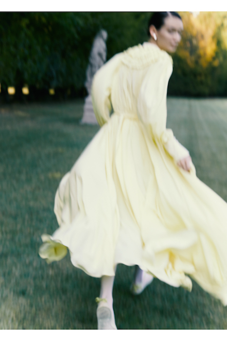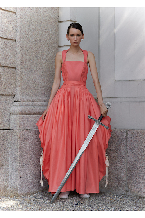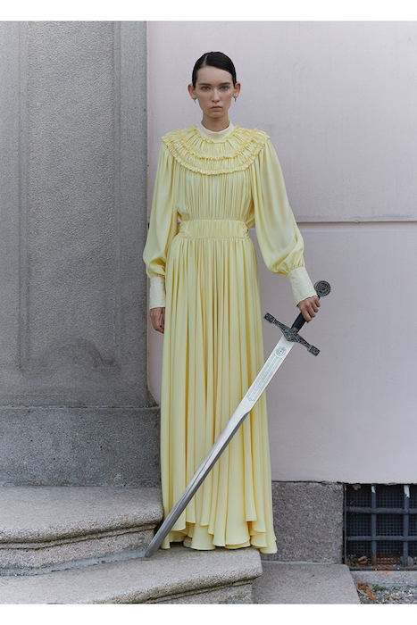 The sophisticated romantic blooms anew. Romeo Gigli’s modern feminine collection is a “treasure trove of memories and personal passions.” for the Gigli Spring 2022 collection, Creative Director Alessandro De Benedetti draws inspiration from the cinematography of “Picnic at Hanging Rock” Ultra-femme maxi details are layered in fluid silhouettes.