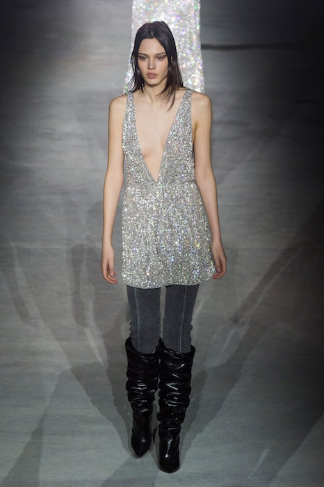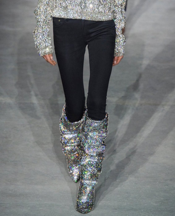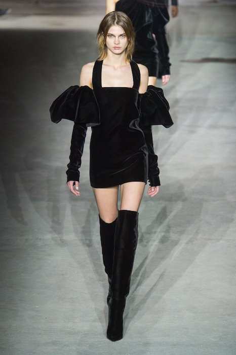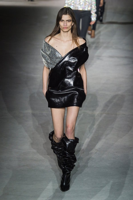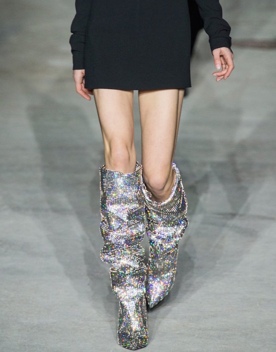 Let’s take a moment to look at how HOTTTT SAINT LAURENT fw 17 by Anthony Vaccarello is. LBD is back – in velvet, jersey, a little sparkles detail, a little puffed sleeve, mixed with leather, and then the crinkled boots and the 70’s vibe. Hot Hot Hot. A collection especially in tune with how we would wear the night gear – even over skinny jeans, just like I like ’em.