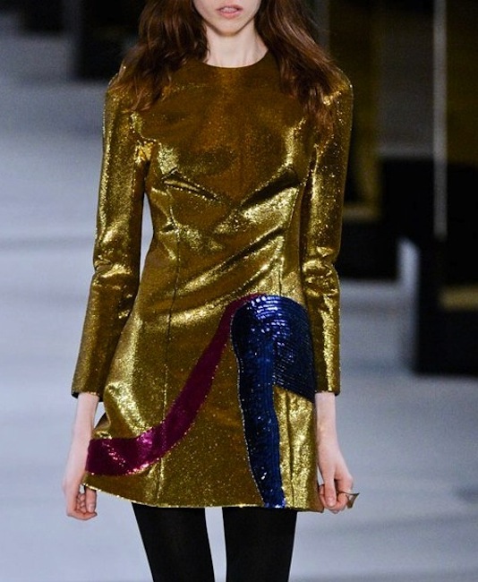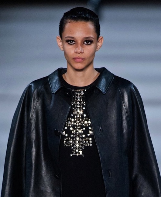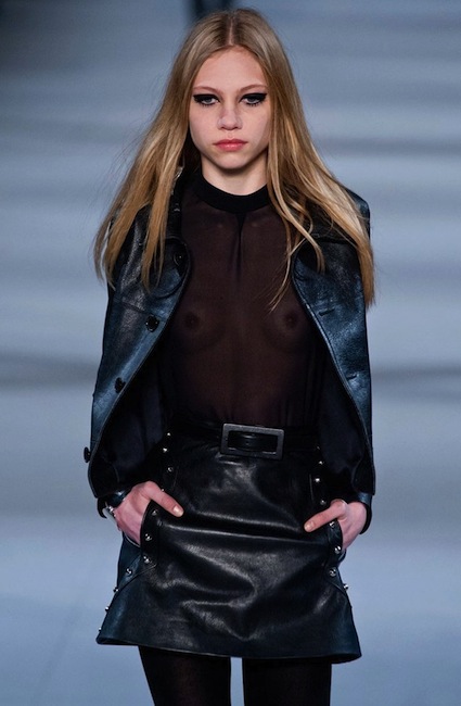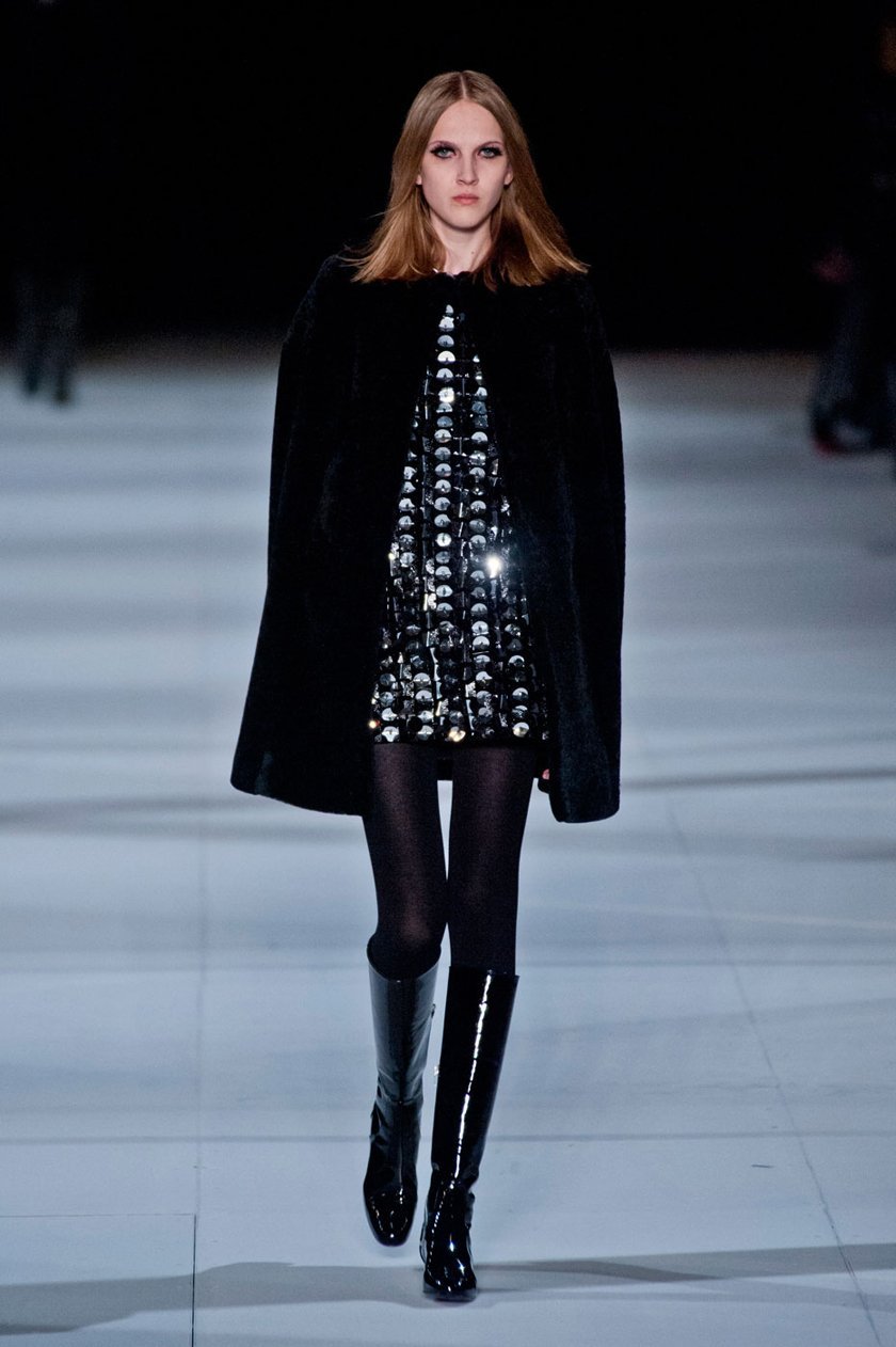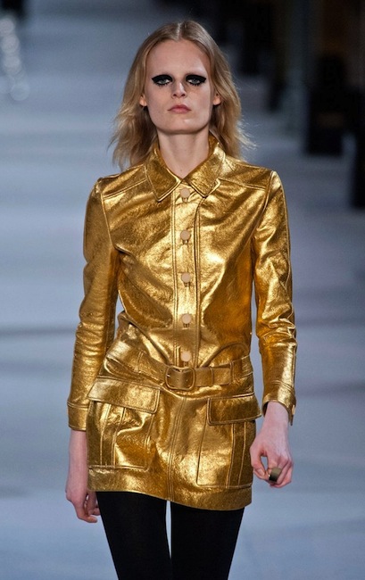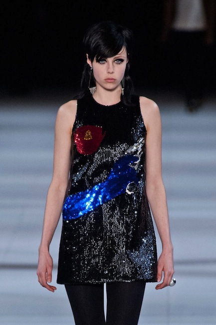 Modish rocker girl best describes the Saint Laurent Fall 2014 PFW collection. Designer Hedi Slimane showed his girls in 60s minis and lots of leather, resulting in scorching hot ensembles with edge and spirit. With a slew of rockers sitting front row, including Arctic Monkey’s frontman, Alex Turner, this was a show for the musically inclined, fashionable set.