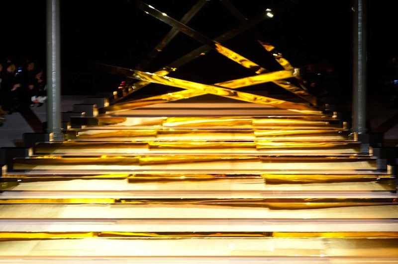 Along with the hot minis, there’s adorable coats with large button details. Leather motorcycle jackets are scorching and a bright red cape is no ‘Little Red Riding Hood.’ A shiny metallic gold dress has enough shimmer and shine for a NYE celebration and a black shiny number is just as adorable with a poopy flower detail. High boots are go-go girl chic and sparkling heels would make Dorothy jealous. There’s no pace like this runway show.