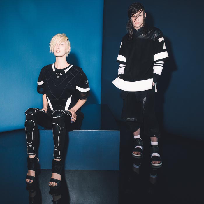 Another look at spring 2014 from one of our favorite recent flavors, SKINGRAFT. Brothers Jonny and Christopher Cota give us an American avant-garde with performance art-inspired fashion. The Spring campaign is photographed by Meeno Peluce features Models Harry Hains and Katrina Hunter, under the creative direction of Rick Gradone.