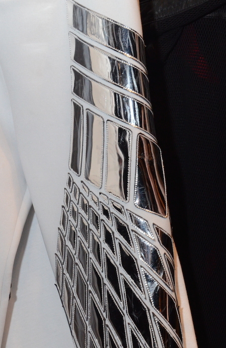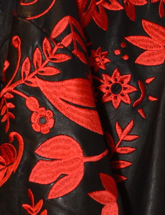 Jonny Cotas’ remarkable SKINGRAFT Spring 2015 collection at NYFW hits us with an explosion of smoky textures and relaxed leather fashion. Embroidered pieces fuse with flowy transparent fabrics, bold metallics, and oxblood red tones. The designer’s signature styled leather drew in the attention not only from our editor Brigitte, who sat next to Barron Hilton, but also Whoopi Goldberg, Miss J, Ally Hilfiger, and Perez Hilton.