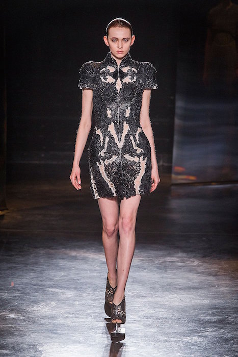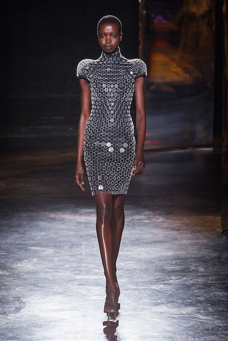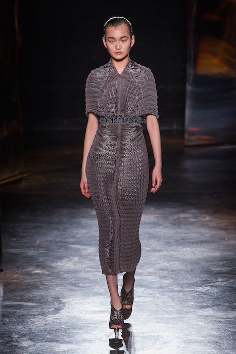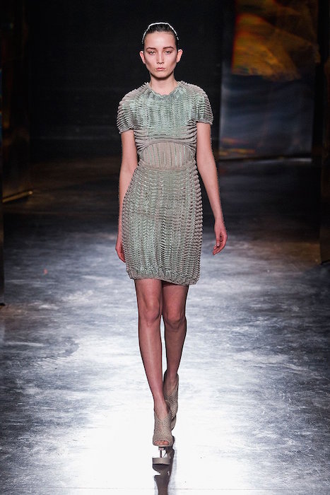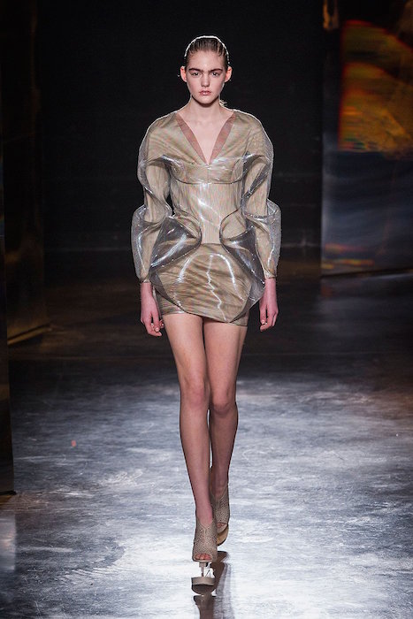 From our favorite Avant-gardist Iris Van Herpen, comes a more wearable, almost feminine collection for fw16. Shown during Paris Fashion Week, the sculpted specials got a hand of softness… Flirting with mint, 3D details took on a crochet and lace-like effect. Veiled in soft tones contrasted with some black action, the all dress collection of show stopping looks flaunted with the platform shoes got our major attention again.
