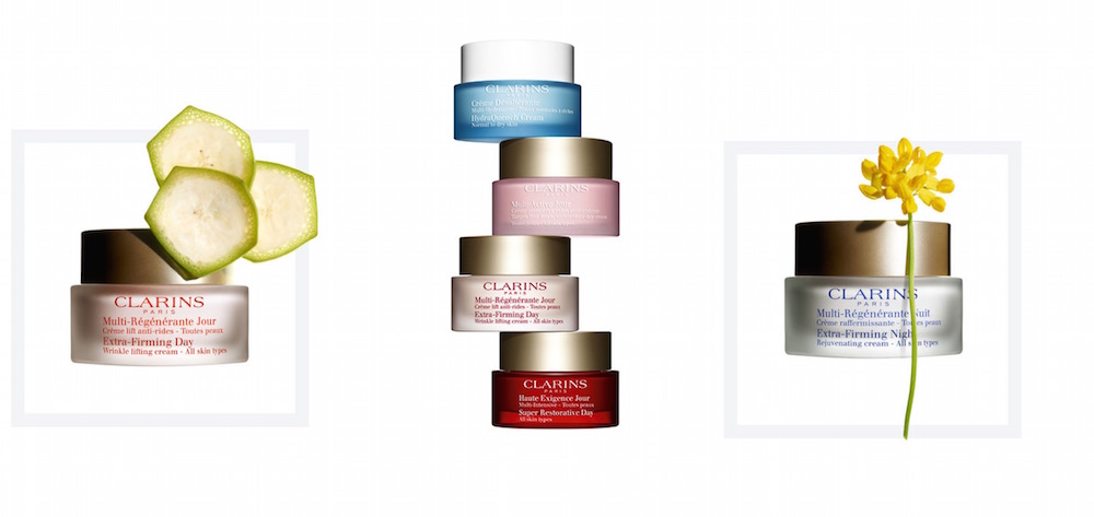 Using intensive nourishing creams can help replenish the skin to help restore a youthful appearance. The Super Restorative Day Cream SPF 20 helps skin weakened by hormonal changes linked to aging. A little more lift, tone and elasticity is welcome to mature skin thanks to the anti-aging superstar-Clarins’ Harungana Leaf- the “healing” tree from Madagascar which helps fight skin slackening. The Super Restorative Night Wear for All Skin Types contains the Montpellier cistus plant extract (a “phoenix” plant), which promotes a more even skin tone. This regime targets diminish the appearance of deep wrinkles, minimizing the appearance of age spots, and brightening the complexion. Helping to restore elasticity, the night time formula works while you sleep to visibly promote skin density and an even skin tone, so you can wake up a little brighter in the morning!