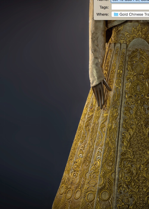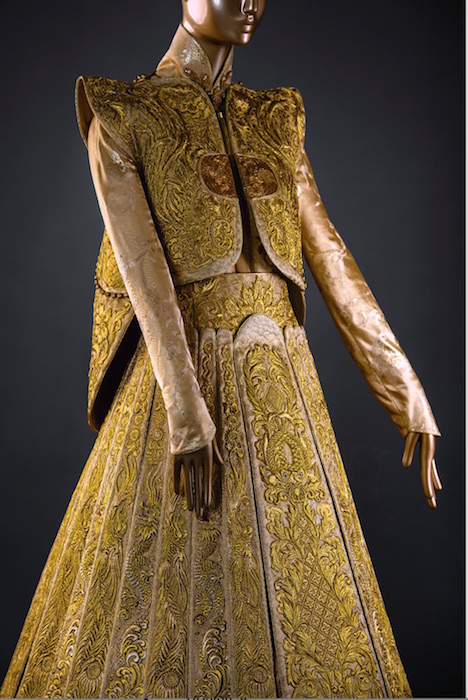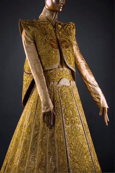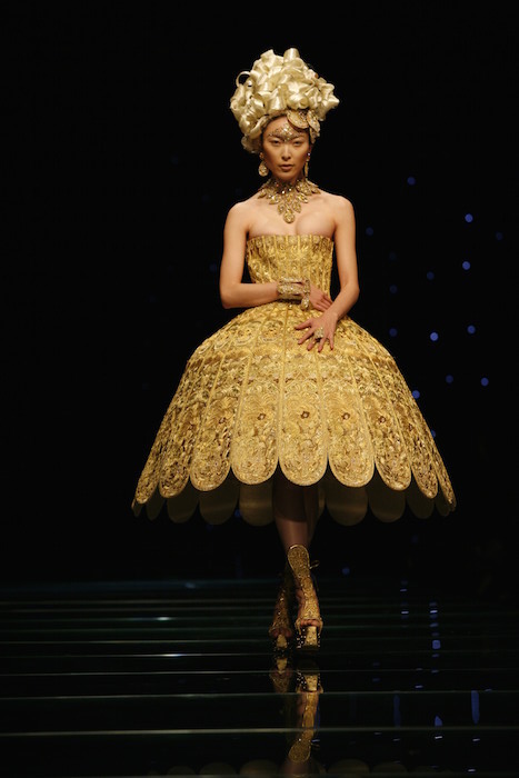 “This exquisite piece of couture design was meticulously crafted over the course of five years, and is hand sewn with gold thread in-laid with the precious metal. Carrying an estimate of £500,000-700,000, the ‘Gold Traditional Bridal Dress’ (黄金嫁衣) comes to auction direct from Guo Pei’s atelier in Beijing, presenting a rare opportunity to acquire a piece from one of the designer’s significant couture collections, normally only available to purchase by commission.”