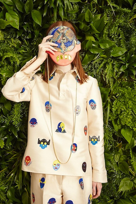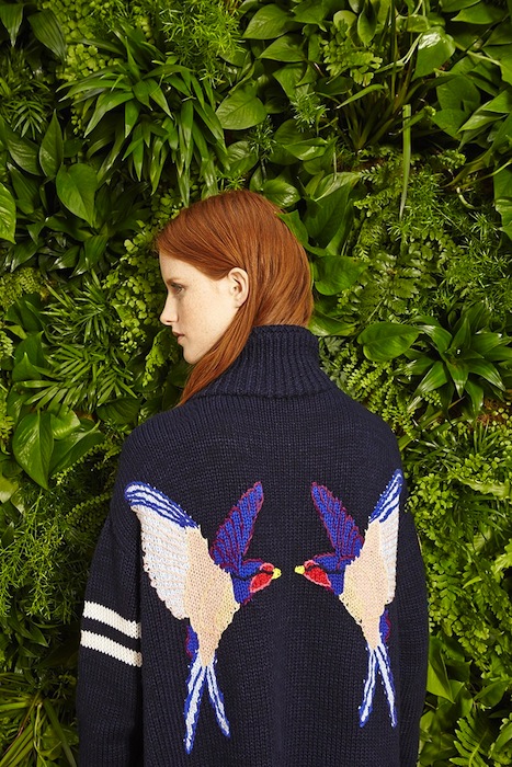 Held admidst the greenery of the Elizabeth Street Garden and graced by familiar faces such as Maggie Gyllenhaal and Cara Delevingne, the show was a celebration of putting fun back into fashion. Stella McCartney’s collection defies the limits of pattern and style pair-ups. Who says a striped top can’t go with a pair of platform wedges and a head-turning patterned skirt? Two lovesick swallows share a kiss on the back of a casual knit sweater, a definite staple for the upcoming spring season. The accessories are also a sure stray from the ordinary, with long-chained lucha libre/superhero clutches that defeat the villainous drab bags of yesterday.