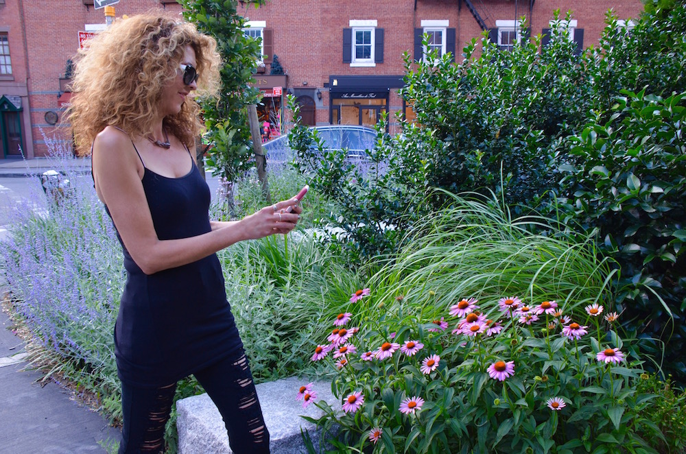 My second newbies are the lady-like sunnies from Kate Spade to jazz up my summer romance mood… while taking a moment to smell and view the gorgeous flowers around the West Village and Chelsea.