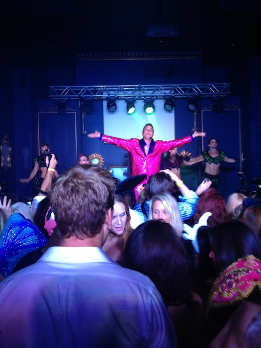 the almost end of Hamptons summer night party 2012 may have been officially jungle-themed, but decadence was the true motif of the night. Guests gathered around Sir Ivan’s backyard infinity pool, snacking on crostinis with caviar; a few beautiful couples in capes looked out on the crowd from the poolside canopy bed. As the sun set, two giant torches sprang to life alongside the pool, illuminating women and men in lingerie, several pairs of elaborate fairy wings and bunny ears, and an entire group of men in leopard-print loincloths — everything, really, but the electro-pop recording artist himself.