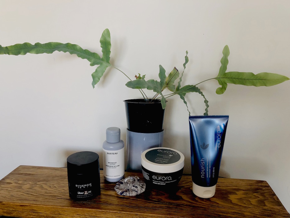 Nourish – urgent repair treatment – An intensive protein-rich restructuring and replenishing treatment that helps moisturize and hair and help itchy scalp. This formula contains Botanical extract blend of Chamomile, and Horsetail to provide strength, shine and promotes scalp health. Extracts of Menthol, and Peppermint Oil help soothe a dry, itchy scalp. Leave on a few minutes daily, or up to 15 minutes for a treatment once a week. Eufora Urgent Repair Treatment.($32).