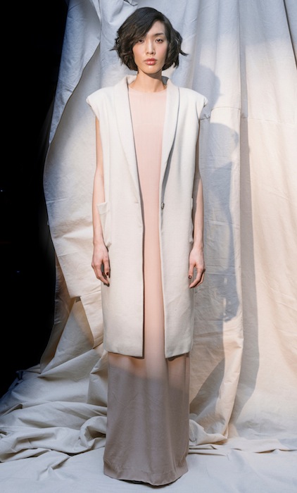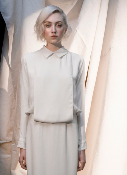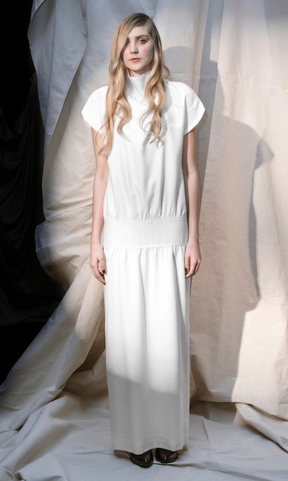 Head to toe loose-fitted boyfriend clothes elongated the models bodies conservatively. Not a lot of skin shined through this season, if anything, an arm or leg here and there but nothing too suggestive. Mimicking the white purity of snow, a handful of pants, jackets, dresses, skirts, and sweaters were all structurally linear, with the wavy-haired models giving a bit of feminine appeal to the collection. Suzanne Rae FW13 NYFW Written by Julia Paulescu.