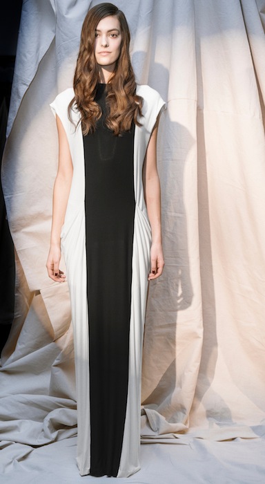 Young designer Suzanne Rae gave us minimal looks for fall 2013. Brooklyn native Suzanne Rae Pelaez constructed the garments for this season by expressing her take on the importance of the multiple-roles of females in the modern times. The simplicity was developed in a number of contemporary looks at the presentation. Fabrication that highlighted the softness and purity of skin was in abundance, color blocked in black and white combinations on paneled dresses and tops for bold.