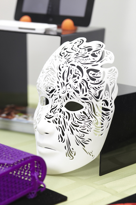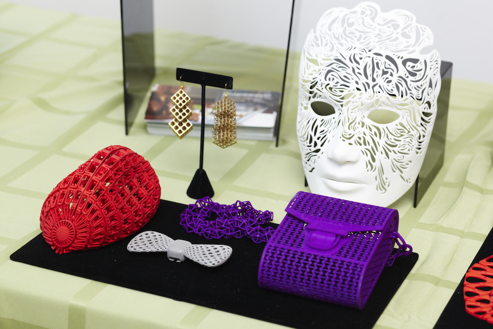 We also spotted the perfect accent by way raw natural beauty, a nice selection of delicate gems from Meredith Marks jewelry. For something a little bit more punchy, meet the wow factor and genius that is the 3D printer. From bowties to bags, necklaces and beyond – this innovation is churning out spectacular creations from Shapeways. The mask on display was both beautiful and intriguing.