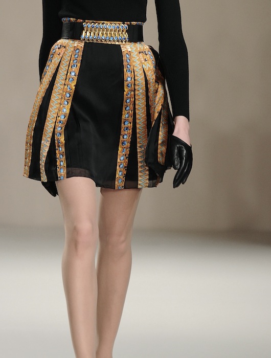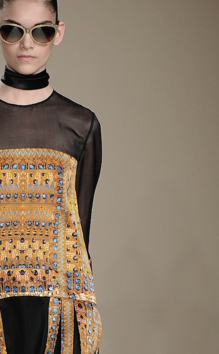 Though the palette had its neutrals, there were a few pieces that truly embraced their spunky orange, yellow and turquoise personalities. The overall effect was enhanced by brilliantly fantasized patterns and textures, creating a gracefully luxurious look for the chic twenty-first century female. fdmLOVES selects from TEMPERLEY LONDON aw13 by Brigitte Segura, Written by Julia Paulescu.